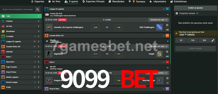 O 9099 Bet oferece uma grande seleção de opções de apostas em e-sports com probabilidades competitivas